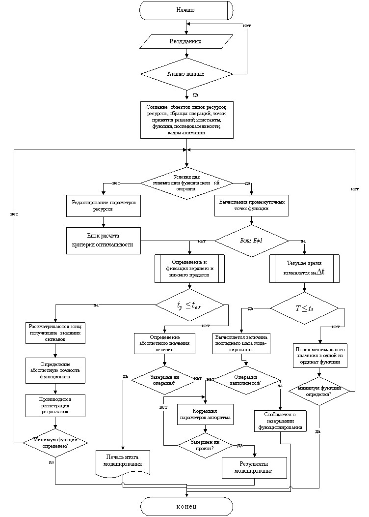 Вариант блок-схемы моделирующего алгоритма, приведен на рис.8.