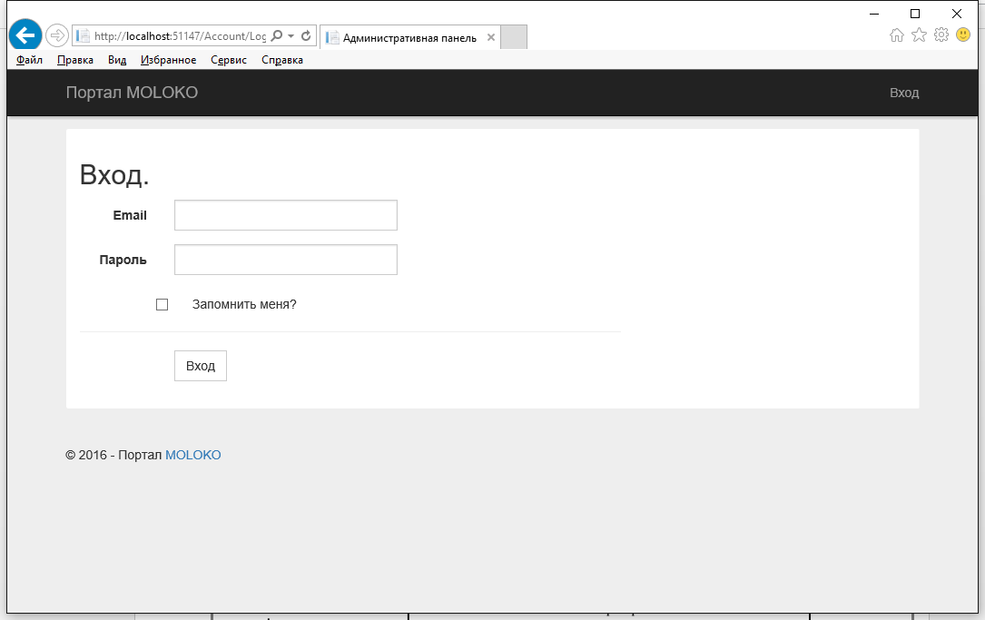 Для начала использования подсистемы Портал ИС необходимо запустить на АРМ совместимый браузер (на скриншотах приведен пример работы с системой в браузере Internet Explorer 11.212.10586.0) и ввести в адресной строке адрес системы: