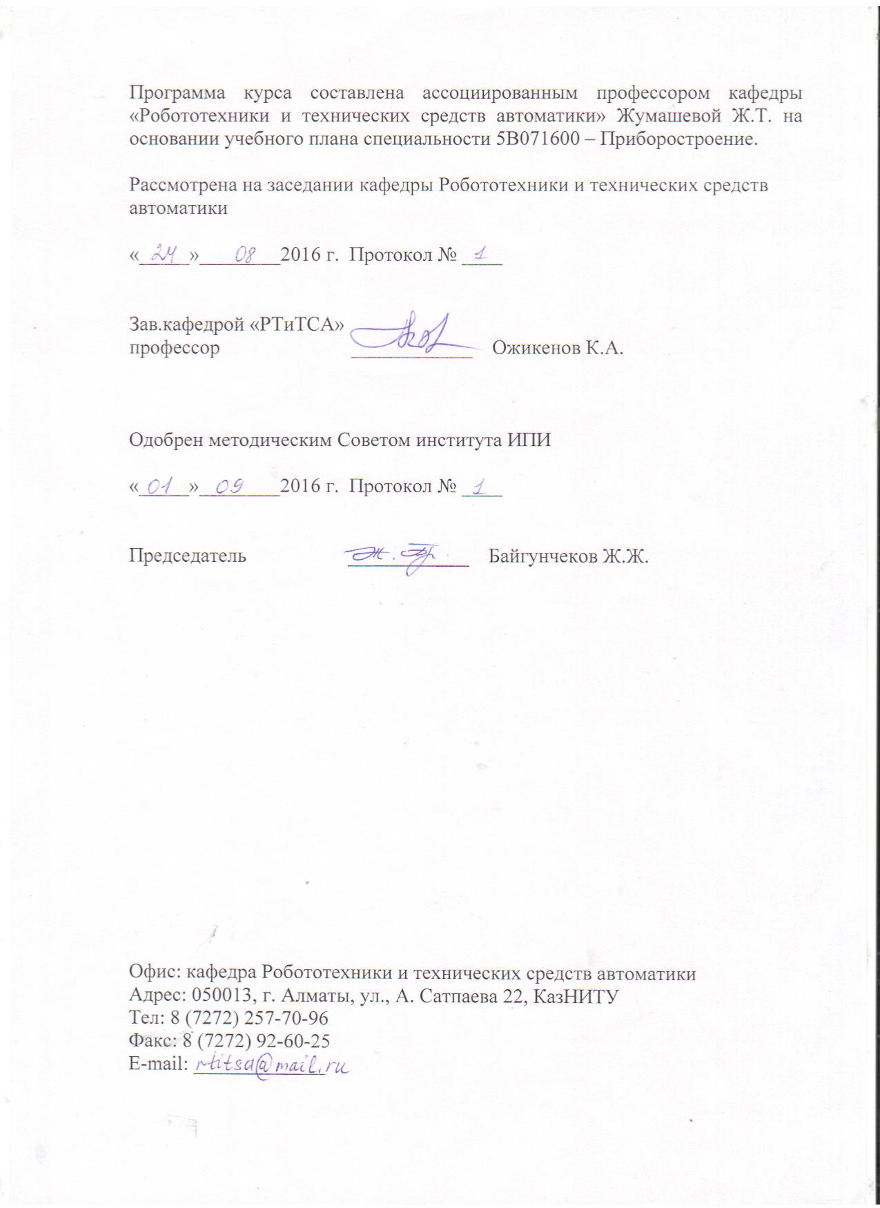 , Основы мехатроники и робототехники. Методическое указание к выполнению лабораторных работ, - Алматы, 2006. Шоланов Қ.С., Жұмашева және робототехника негіздері. Лабораториялық жұмыстарды орындауға арналған әдістемелік нұсқаулар.-Алматы, 2006. Жұмашева . Учебное пособие. Алматы: КазНТУ, 2010, 80 с.4.2 Дополнительная литература